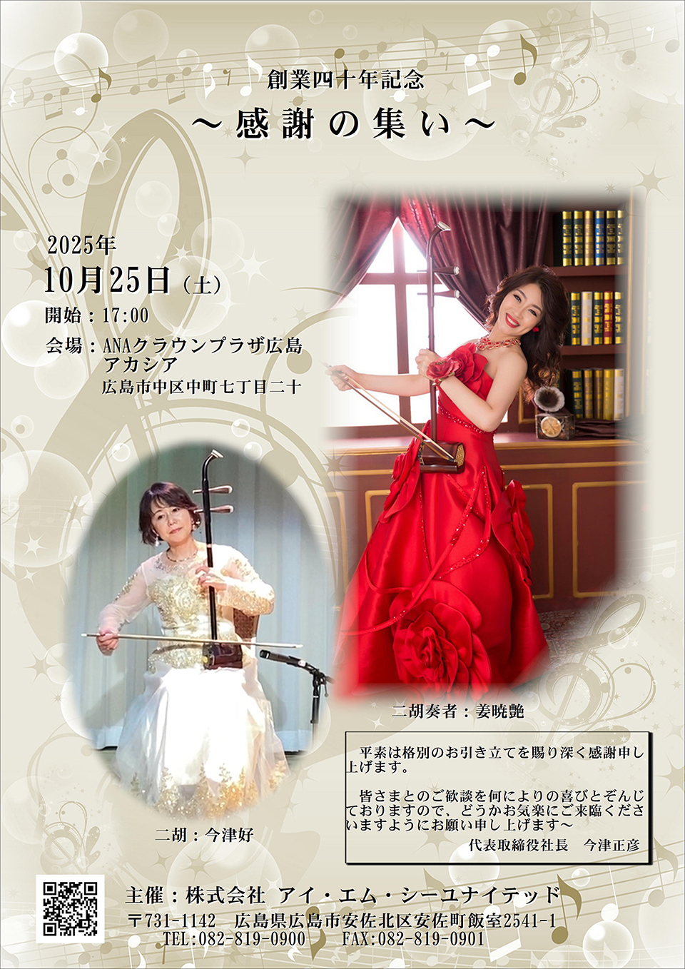 出演者 | 二胡奏者・医学博士 姜暁艶 |