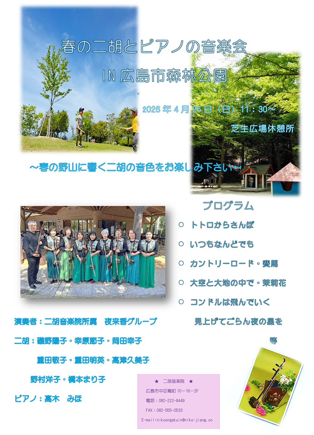 | 協賛 | 二胡音楽院・夜来香グループ |